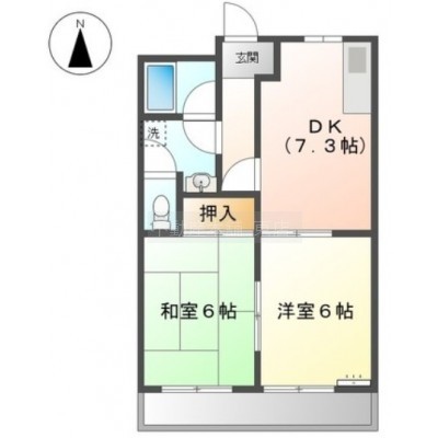 2DK(44.5m²)└ 洋室6帖 和室6帖 DK7.2帖