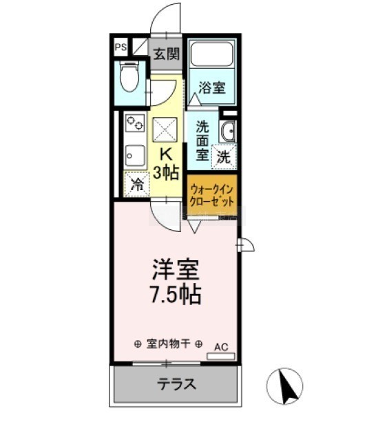 1K(26.52m²)└ 洋室7.5帖 K3帖