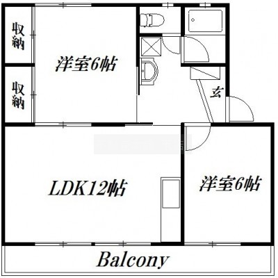 2LDK(53.64m²)└ 洋室6帖 洋室6帖 LDK12帖