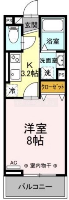 1K(26.27m²)└ 洋室8帖 K3.2帖