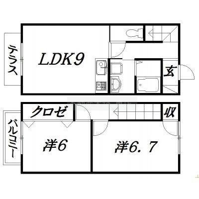 2LDK(56.3m²)└ 洋室6.7帖 洋室6帖 LDK9帖