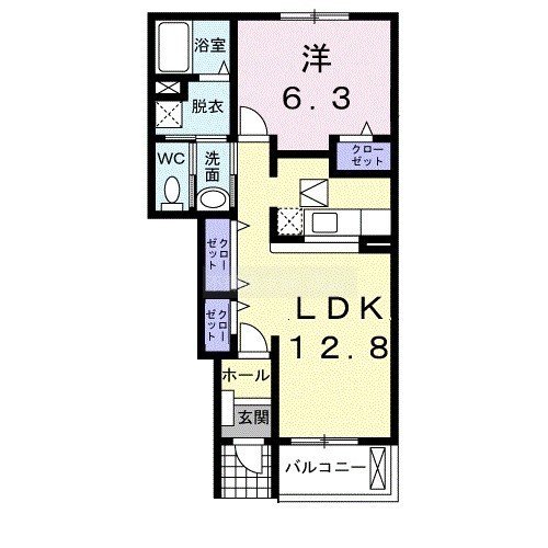 1LDK(46.49m²)└ 洋室6.3帖 LDK12.8帖