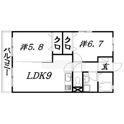 2DK(50.78m²)└ 洋室6.7帖 洋室5.8帖 DK9帖