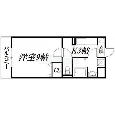 1K(25.9m²)└ 洋室9帖 K3帖