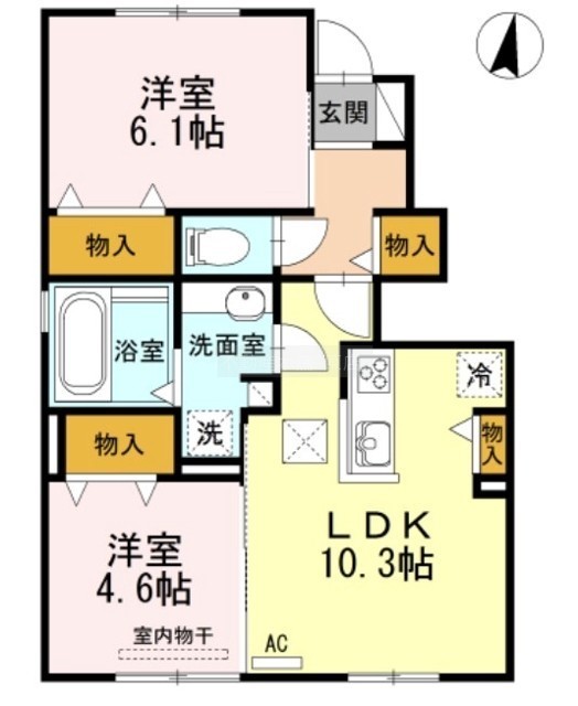2LDK(51.16m²)└ 洋室4.6帖 洋室6.1帖 LDK10.3帖