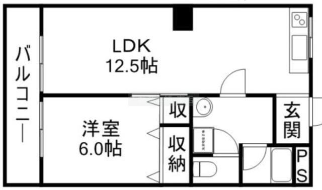 1LDK(44.3m²)└ 洋室6帖 LDK12.5帖
