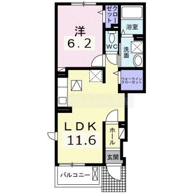 1LDK(41.13m²)└ 洋室6.2帖 LDK11.6帖