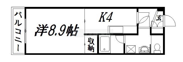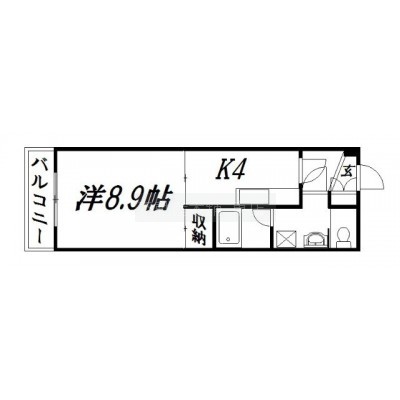 1K(34.3m²)└ 洋室8.9帖 K4帖