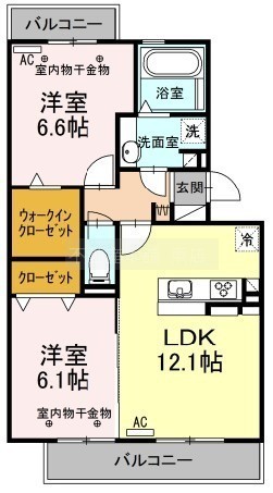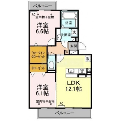 2LDK(58.4m²)└ 洋室6.6帖 LDK12.1帖 洋室6.1帖