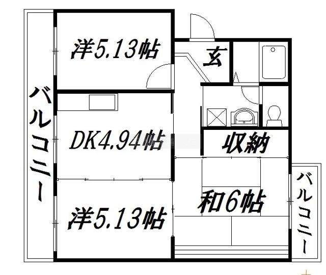 3DK(55.4m²)└ DK4.9帖 洋室5.1帖 洋室5.1帖 和室6帖
