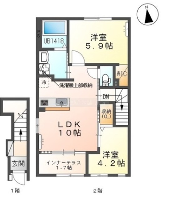 2LDK(53.8m²)└ 洋室5.9帖 洋室4.2帖 LDK10帖