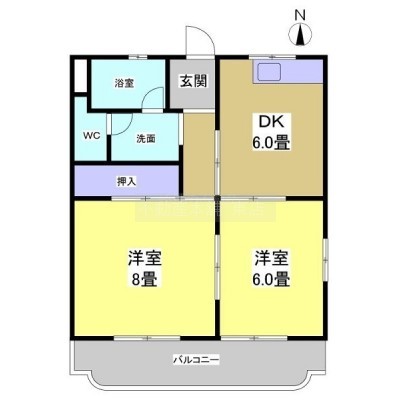 2DK(44.9m²)└ 洋室8帖 洋室6帖 DK6帖