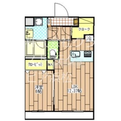 1LDK(44.37m²)└ 洋室6帖 LDK12.37帖 S1.28帖