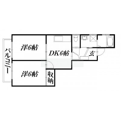 2DK(36.4m²)└ DK6帖 洋室6帖 洋室6帖
