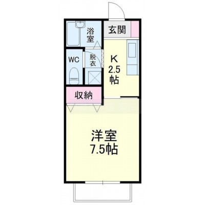 1K(23.9m²)└ K2.5帖 洋室7.5帖