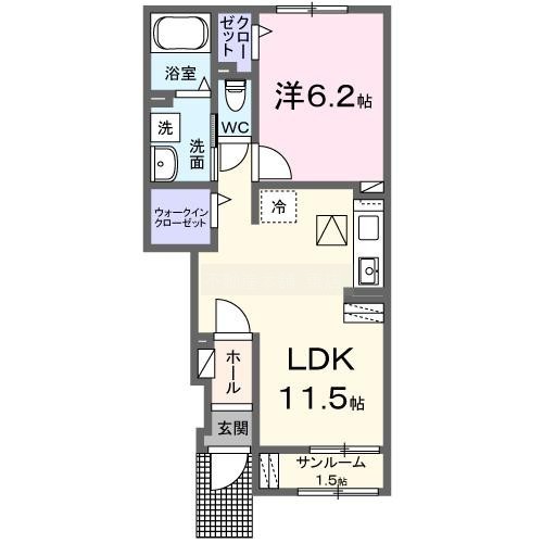 1LDK(43.61m²)└ 洋室6.2帖 LDK11.5帖