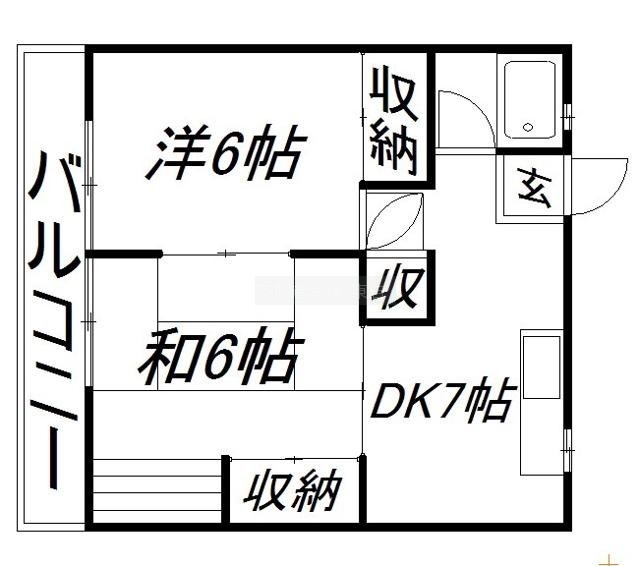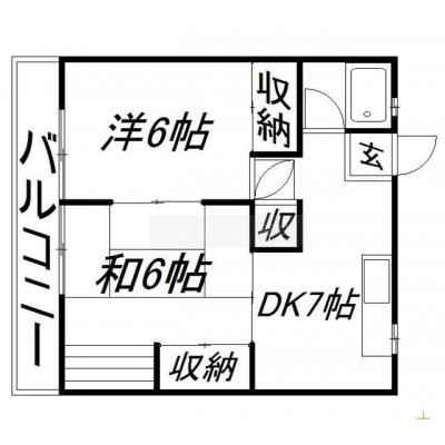 2DK(38m²)└ 洋室6帖 洋室6帖 DK7帖