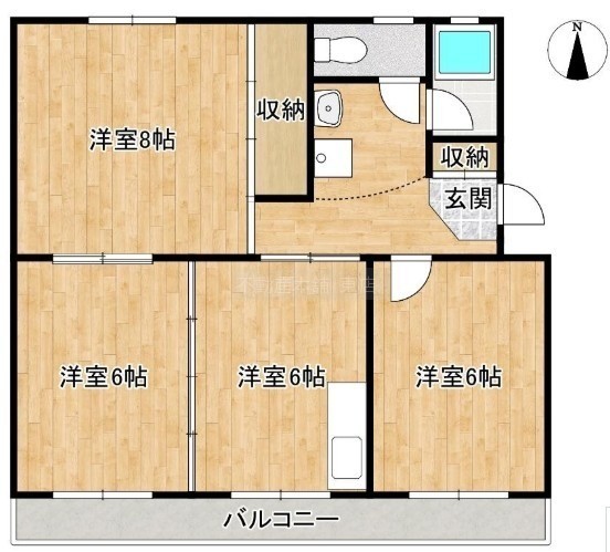 3DK(58.68m²)└ 洋室6帖 洋室6帖 洋室6帖 DK6帖