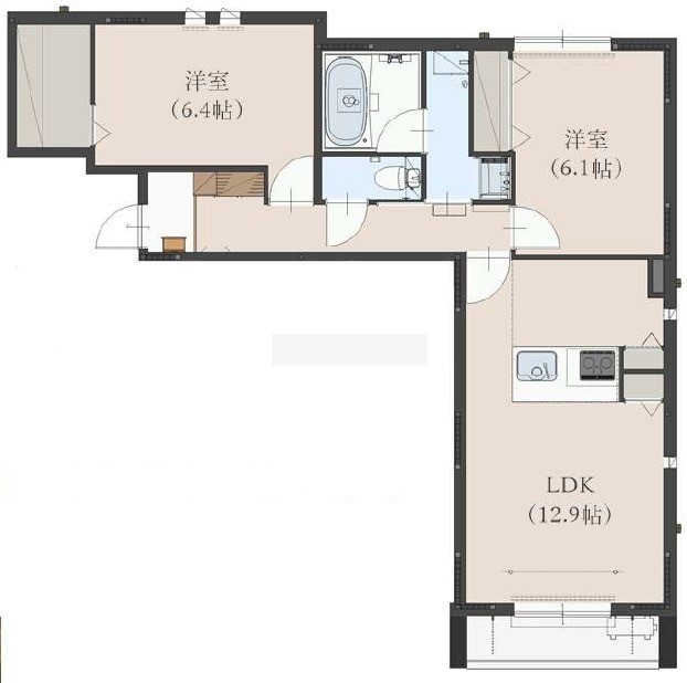 2LDK(61.62m²)└ 洋室6.4帖 洋室6.1帖 LDK12.9帖