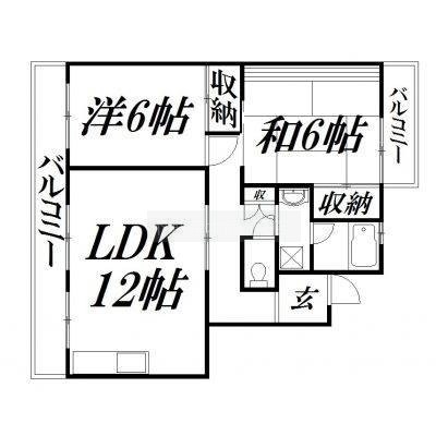 2LDK(61.24m²)└ 和室6帖 洋室6.5帖 LDK12.4帖