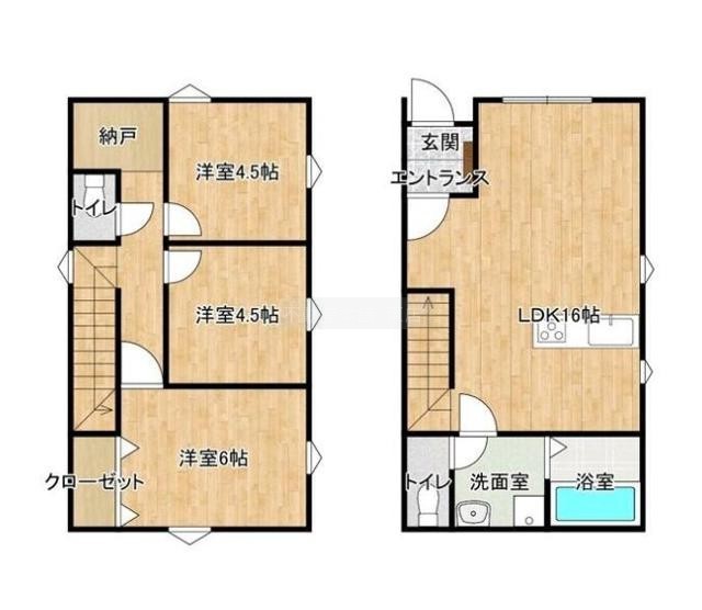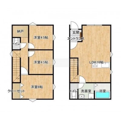 3LDK(73.9m²)└ LDK16帖 洋室4.5帖 洋室4.5帖 洋室6帖