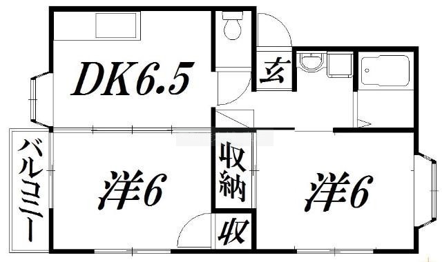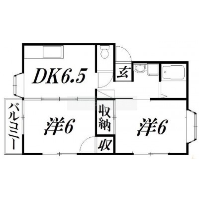 2DK(43.64m²)└ 洋室6帖 洋室6帖 DK6.5帖