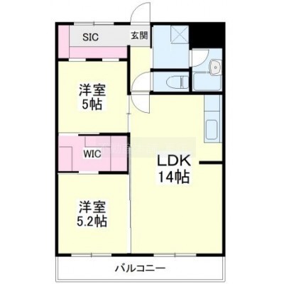 2LDK(56.7m²)└ 洋室5.2帖 洋室5帖 LDK14帖