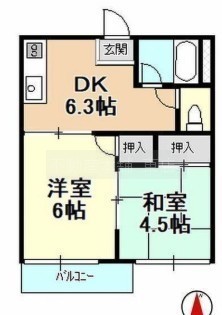 2DK(34.65m²)└ 洋室6帖 和室4.5帖 DK6.3帖