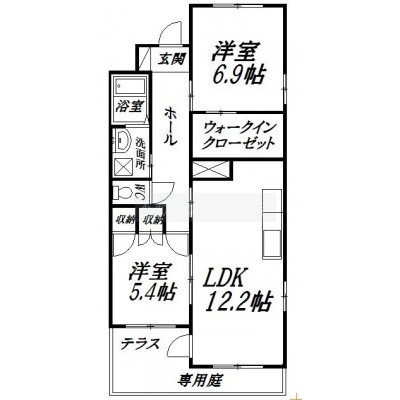 2LDK(60.11m²)└ 洋室5.4帖 洋室6.9帖 LDK12.2帖