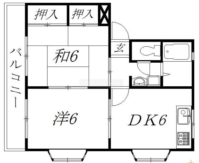 2DK(39m²)└ 和室6帖 洋室6帖 DK6帖