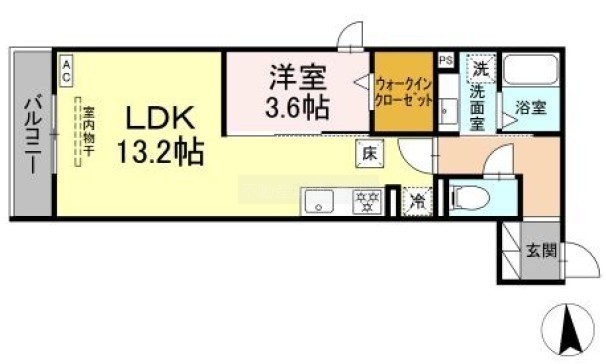1LDK(42.2m²)└ 洋室3.6帖 LDK13.2帖