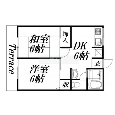2DK(40.5m²)└ 和室6帖 洋室6帖 DK6帖