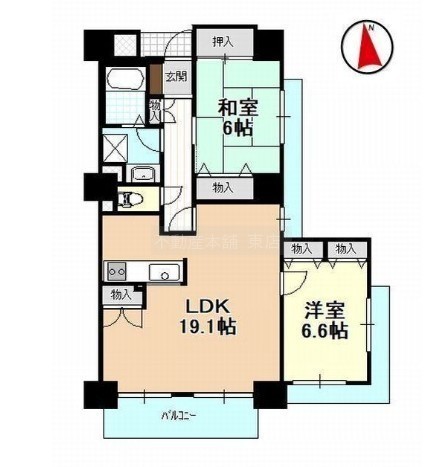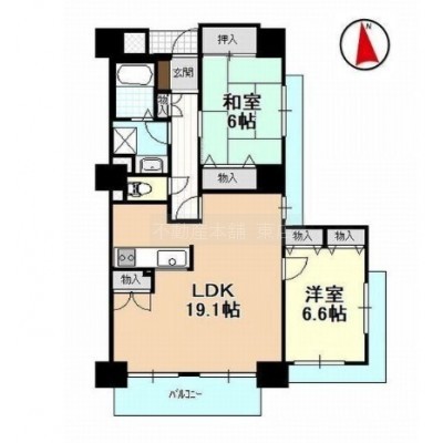 2LDK(69.16m²)└ 和室6帖 洋室6.6帖 LDK19.1帖