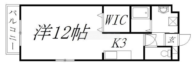 1K(37.6m²)└ 洋室12帖 K3帖