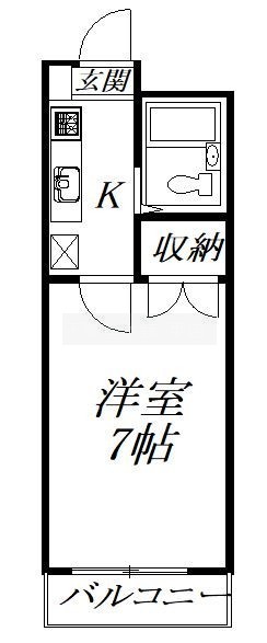 1K(20.36m²)└ 洋室7帖 K2帖