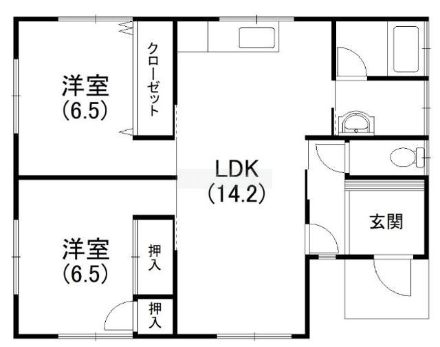 2LDK(61.83m²)└ 洋室6.5帖 洋室6.5帖 LDK14.2帖