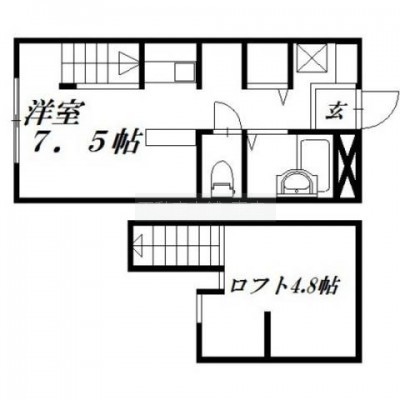1K(21.55m²)└ 洋室7.5帖 K1帖 S4.8帖