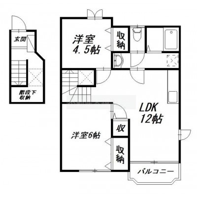 2LDK(58.53m²)└ 洋室6帖 洋室4.5帖 LDK12帖