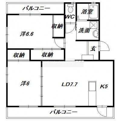 2LDK(60.07m²)└ 洋室6帖 洋室6.6帖 LDK12.7帖