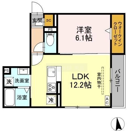 1LDK(42.86m²)└ 洋室6.1帖 LDK12.2帖