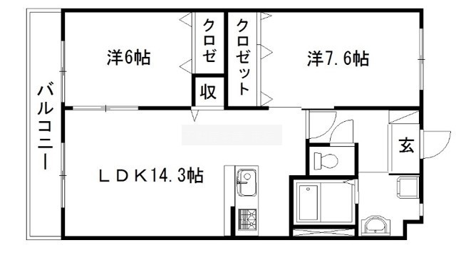 2LDK(63m²)└ LDK14.3帖 洋室7.6帖 洋室6帖