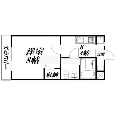 1K(25.92m²)└ 洋室8帖 K4帖