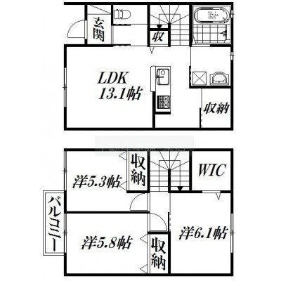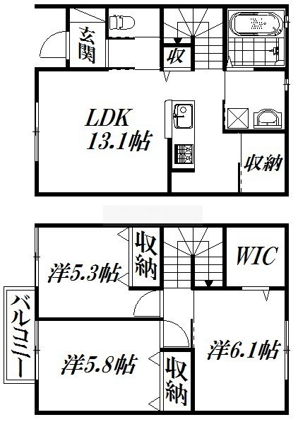 3LDK(77.94m²)└ LDK13.1帖 洋室6.1帖 洋室5.8帖 洋室5.3帖