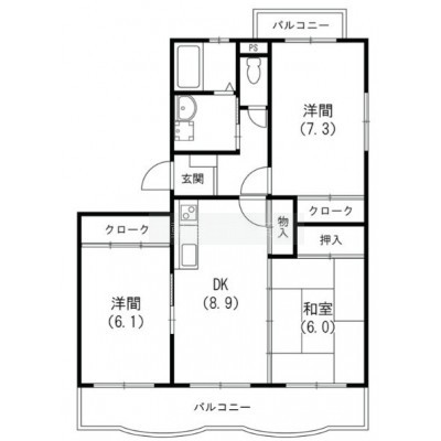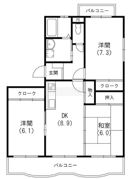 3LDK(65.86m²)└ 洋室6.1帖 和室6帖 洋室7.3帖 LDK8.9帖