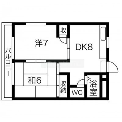 2DK(43.74m²)└ 洋室7帖 和室6帖 DK8帖