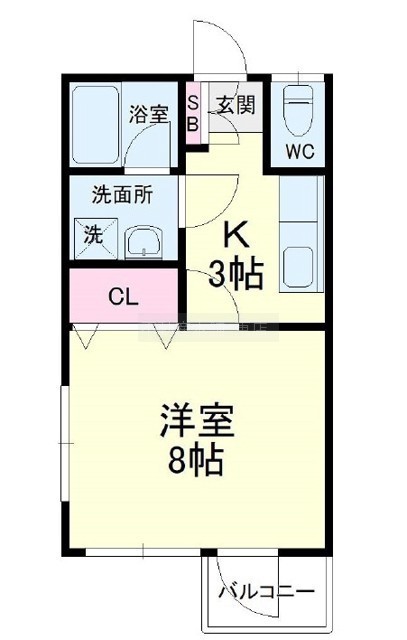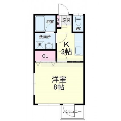 1K(27.45m²)└ 洋室8帖 K3帖