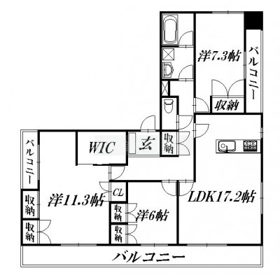 3LDK(105.35m²)└ LDK17.2帖 洋室11.3帖 洋室7.3帖 洋室6帖