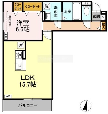 1LDK(54.33m²)└ LDK15.7帖 洋室6.6帖