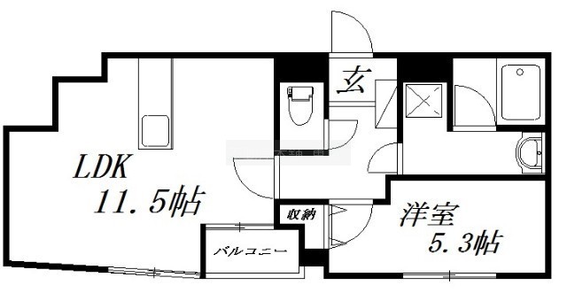 1LDK(42.2m²)└ 洋室5.3帖 LDK11.5帖