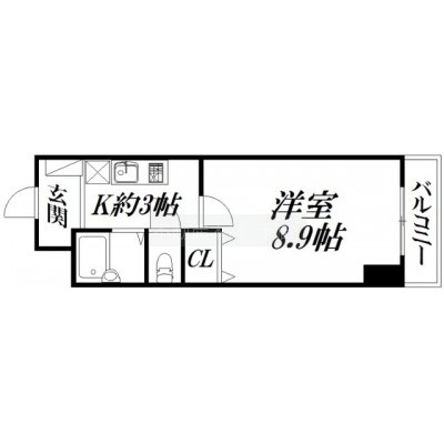 1K(26.6m²)└ 洋室8.9帖 K2.8帖